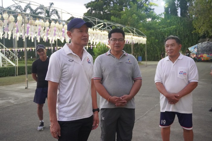 ในการนี้ท่านผู้ว่า ฯ ได้ร่วมปลูกต้นฝนแสนห่า เดิน-วิ่ง ออกกำลังกายและร่วมถ่ายรูปกับประชาชนในบริเวณสวนสาธารณะเทศบาลตำบลสันทรายหลวง (สวนสิริสุขนันทน์)