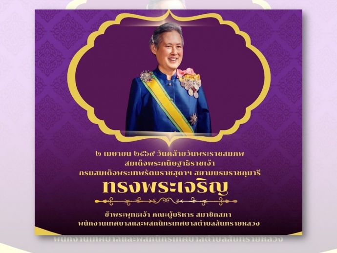 2 เมษายน 2569 วันคล้ายวันพระราชสมภพ สมเด็จพระกนิษฐาธิราชเจ้า กรมสมเด็จพระเทพรัตนราชสุดา ฯ สยามบรมราชกุมารี [02/04/2569]