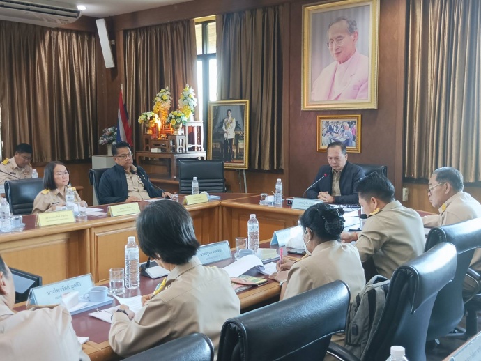 นายกเทศมนตรีตำบลสันทรายหลวง คณะผู้บริหาร และหัวหน้าส่วนราชการเข้าร่วมประชุมอย่างพร้อมเพรียง ณ ห้องประชุมเทศบาลตำบลสันทรายหลวง จังหวัดเชียงใหม่