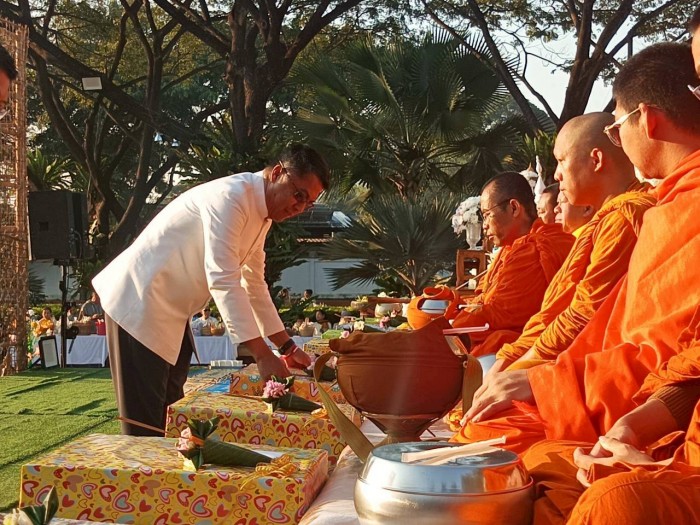 นายนพดล สุระสังวาลย์ นายอำเภอสันทรายได้ให้เกียรติ เป็นประธานและนำพุทธศาสนิกชนร่วมทำบุญตักบาตรแด่พระสงฆ์ เพื่อเสริมสิริมงคลในโอกาสวาระดิถีขึ้นปีใหม่ พุทธศักราช 2569 ณ สวนสิริสุขนันทน์ (สวนสาธารณะเทศบาลตำบลสันทรายหลวง)
