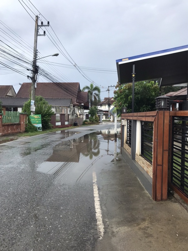 ถนนชำรุด ทำให้เวลาฝนตก เกิดน้ำท่วมขังบริเวณหน้าประตูรั้วเข้าบ้าน ทำให้เกิดอันตรายกับผู้ที่ขับขี่ผ่านหน้าบ้าน และผู้อยู่อาศัยเวลาเข้าบ้าน ประกอบกับน้ำที่ท่วมขังสาดกระเด็นใส่ประตูรั้วทำให้ประตูรั้วเสียหาย